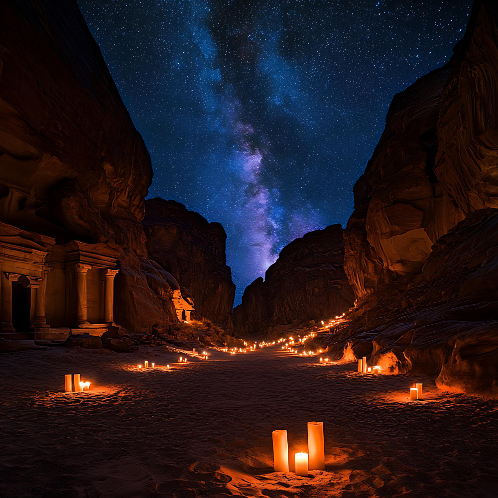 3. Jordan – Petra at Dawn, Wadi Rum at Night